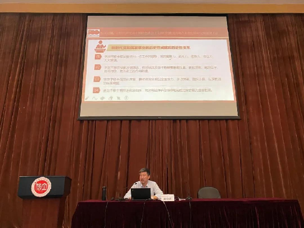 党课上,杨廷干带领与会党员重温了习近平总书记在党史学习教育动员大会上的讲话精神。他指出,百年党史是党领导人民救国救民、强国富民的苦难而辉煌的历史,是解放思想、实事求是的马克思主义中国化的过程,通过学习党史,我们深刻认识到社会主义制度的根本性质,深刻理解了中国特色社会主义文化是从历史传承中来、从革命奋斗中来、从改革创新中来。
