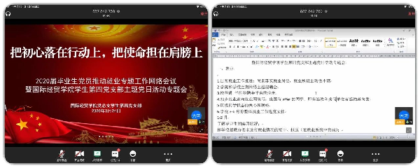 国际经贸学院党总支通过采取微信、腾讯会议等方式开展主题党日活动。各基层党支部采取理论学习、视频党课、融入课改、先进事例分享、讨论交流等做法,开展了形式丰富、内涵深刻的学习交流。一方面,通过解读初心使命,强化了党员的责任意识;另一方面,重点围绕立足岗位、对本职工作进行有益探索。