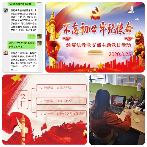 法学院经济法教师党支部主题党日活动分3个环节:战疫情,志愿者行动;战疫情,停课不停学;战疫情,复校后突发事件应对。党员教师们针对不同主题开展了充分讨论。