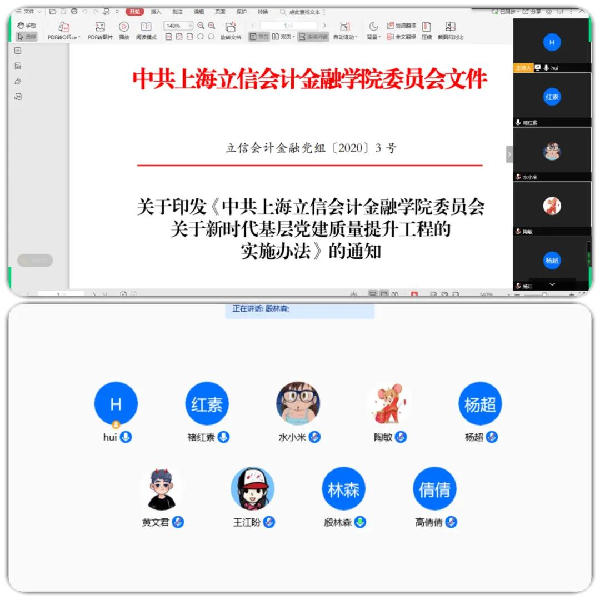 金融学院党委压紧压实责任,填好规定动作“填空题”,选好自选动作“选择题”。学院各党支部认真学习防控疫情期间党中央、上级和学校党委的相关文件精神以及防控疫情的优秀典型人物事迹。党员教师们针对线上教学中产生的问题进行探讨。