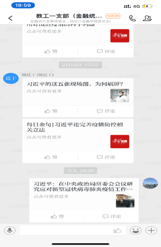 支部积极响应党总支号召,通过微信、学习强国平台召开“众志成城抗疫情,我是党员我先行”等线上主题党日活动,勉励自己不忘初心、不断进步。