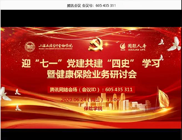 为了庆祝中国共产党建党99周年,进一步回顾历史,永葆政治本色,充分发挥保险学院党总支和共建单位国联人寿保险股份有限公司双方资源优势,大力推进党建工作与业务工作的深度融合。6月24日下午,保险学院在线上召开了迎“七一”党建共建“四史”学习暨健康保险业务研讨会。国联人寿保险股份有限公司党委委员、纪委书记、副总裁钮磊磊,纪委委员、直属二党支部书记、核保核赔部负责人尹凯,纪委委员、党办主任助理张帆,健康险业务部总经理助理朱大中,健康险业务部项目拓展处负责人刘文涛,保险学院党政领导班子、双方党员代表、学院党员学生等共70余人出席研讨会。