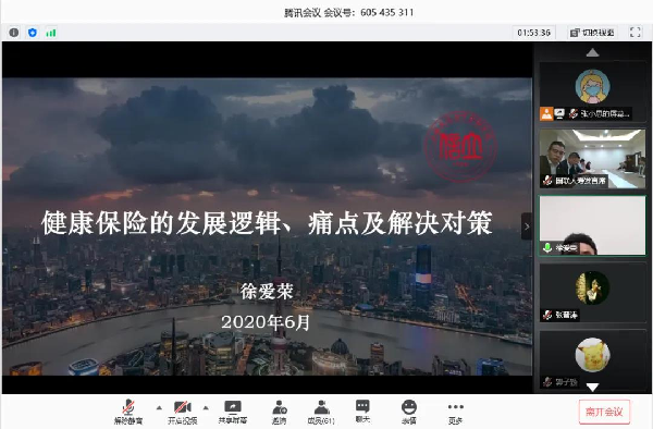 研讨会环节,国联人寿就城市保险(社商)项目做了介绍,保险学院院长徐爱荣做了题为“健康保险的发展逻辑、痛点及解决对策”主旨演讲,双方党员代表就健康保险业务进行深入研讨交流,线上气氛热烈。