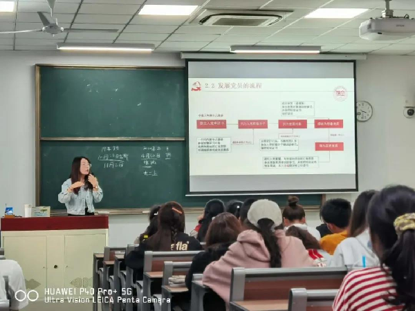 卢庚宿首先讲解了党的基本知识以及大学生的入党意义,强调作为当代大学生每个人都应该学习党员精神,发扬党员品格。接下来,她从入党动机、入党条件、入党程序与要求等方面详细介绍了入党流程,加深了同学们对党的认识和了解。同时卢庚宿老师现场解答了同学们关于入党详细流程以及入党申请书撰写要求等相关问题,使有志向党组织靠拢的同学对入党有了进一步认识。