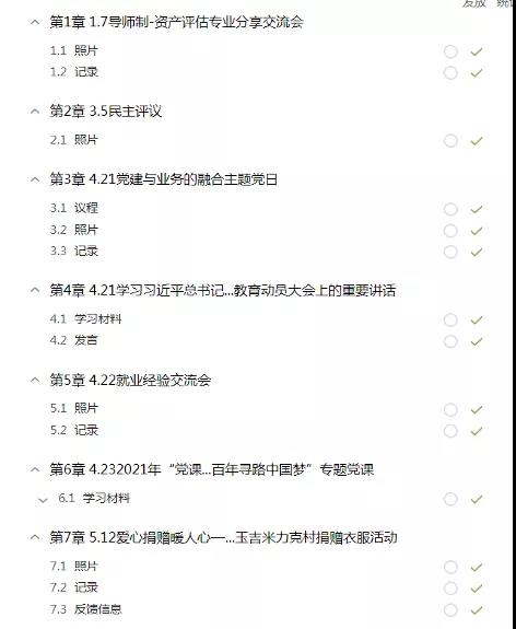 二、增强了党组织的吸引力、凝聚力和号召力。“党支部活动”网络平台内容丰富,信息披露及时。以章节为单位,采用树状图的形式展示了全年所有的党建活动,一目了然。对于专业教师型的支部,党建业务的开展不能脱离专业建设,离不开学院的中心任务,因而以党员教师为主的专业建设活动也是党建活动的内容之一。各项信息的披露和展示,也有利于党员教师先锋模范作用的发挥和辐射,增强了支部的凝聚力。