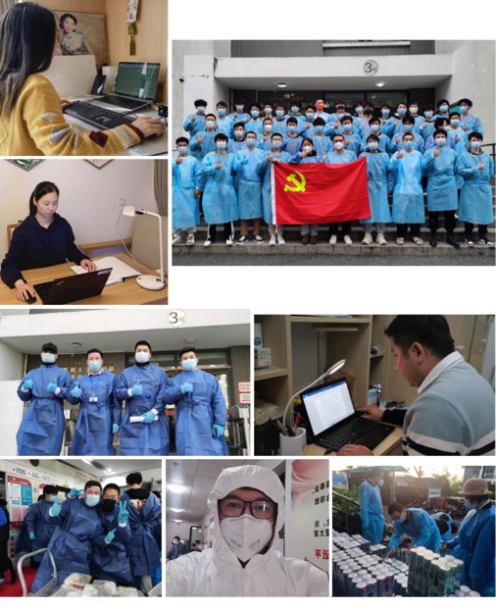 上海战疫的关键时刻,学院教师党员积极下沉一线,主动为基层分忧解难。老师们一边坚守空中课堂,保证教学质量,为学生线上答疑解惑、云陪伴,缓解学生疫情期间的心理焦虑,一边请缨化身“大白”战士,做好社区居民信息登记、核算检测秩序维护、PDA扫码登记、物资物料配送等服务。教师第一党支部钱佳嫣老师热心为早先封控的同事购买必需物资并运送至同事小区,还分出家庭储备援助给物资紧缺的社区邻里以及身处其他小区的同事;教师第二党支部黄怡老师主动捐款2000元;学生党支部虞红老师多次默默捐赠食物食品给小区孤寡老人和由于疫情封控在社区的保洁、保安、施工人员等。