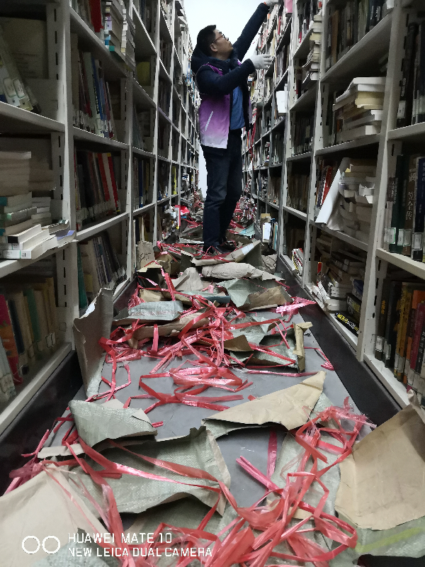 文博楼书库堆积了很多临时打包未整理的书籍,学院党总支副书记得知这一情况后,带领学院教职工党员,联合图书馆流通部党支部的全体党员,在图书馆工作人员的安排下整理浦东校区密集书库里的书籍。他们不怕脏,不怕累,积极劳动,用自己的行动诠释着永恒的雷锋精神。