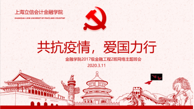 为深入贯彻落实习近平总书记关于打赢疫情防控阻击战重要指示精神,按照教育部最新工作要求,根据校党委有关工作部署,近日,金融学院全部81个行政班级通过网络开展“共抗疫情,爱国力行”线上主题班会暨入党启蒙教育活动,激发全体学生的爱国热情,感受英雄情怀,凝聚必胜信心,推进校园疫情防控知识入脑入心。