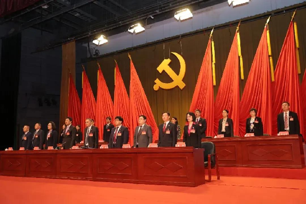 上午10点30分,大会在雄壮的国歌声中开幕。主席台上方正中悬挂着中国共产党党徽,十面鲜艳的红旗分列两侧。