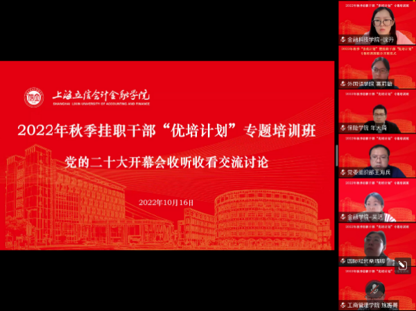 开班仪式后,全体参训学员收听收看了党的二十大开幕会。下午,学员围绕二十大报告的15个部分,聚焦党的建设、人才队伍建设、法治建设、科教兴国、文化自信、民生问题等内容,结合自身工作实际开展分组讨论,并进行了交流发言。